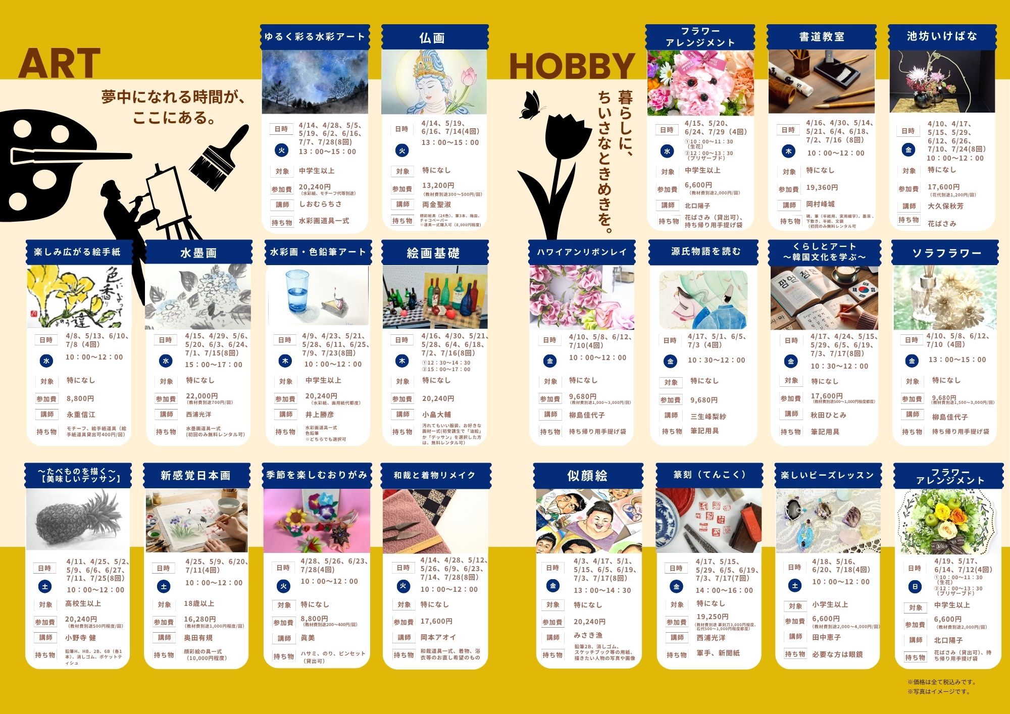 ※講座によって別途材料費が必要な場合がございます。