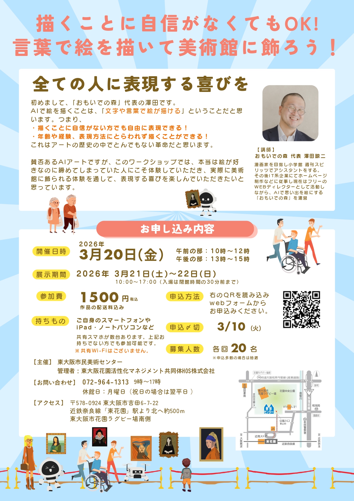 お問い合わせは市民美術センターまで。申込1件につき3人まで。