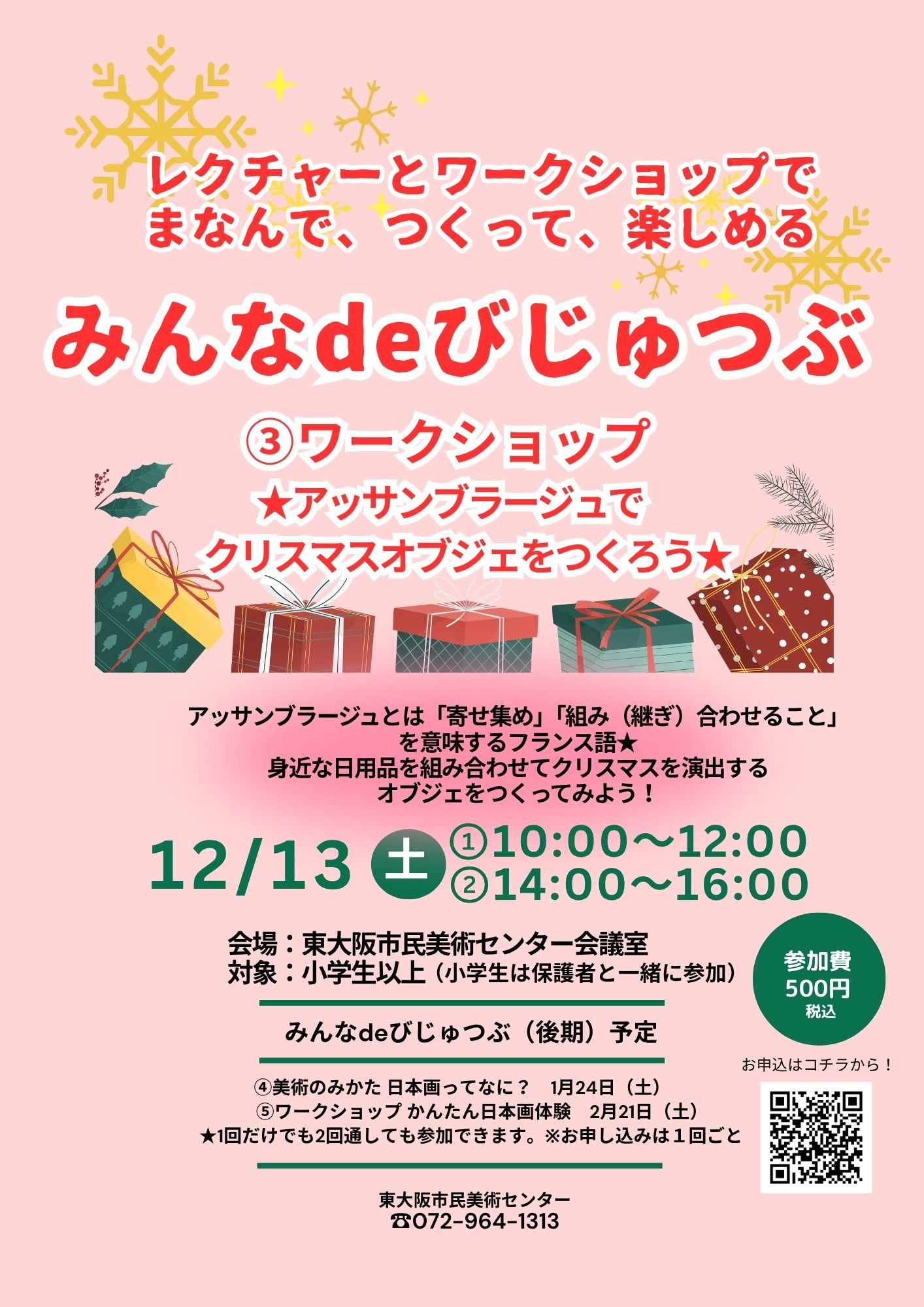 お問い合わせは市民美術センターまで。申込1件につき3人まで。